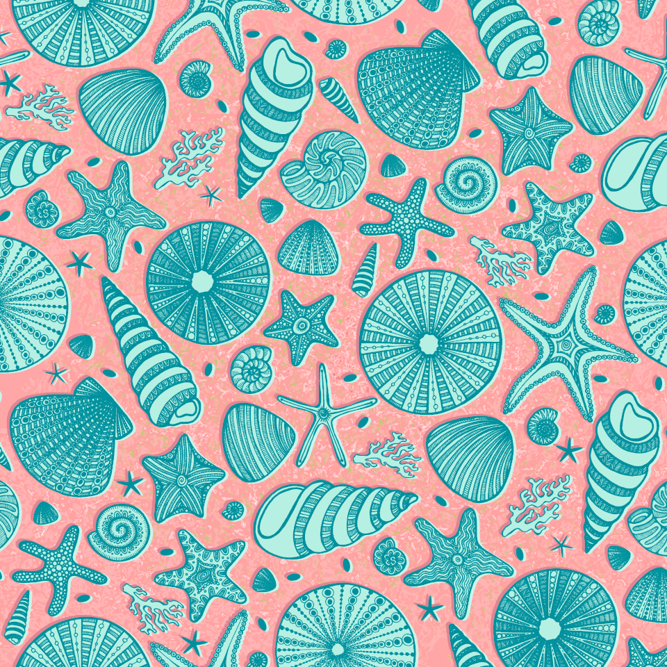Summer Shells.   Digitally-manipulated pen and ink drawing